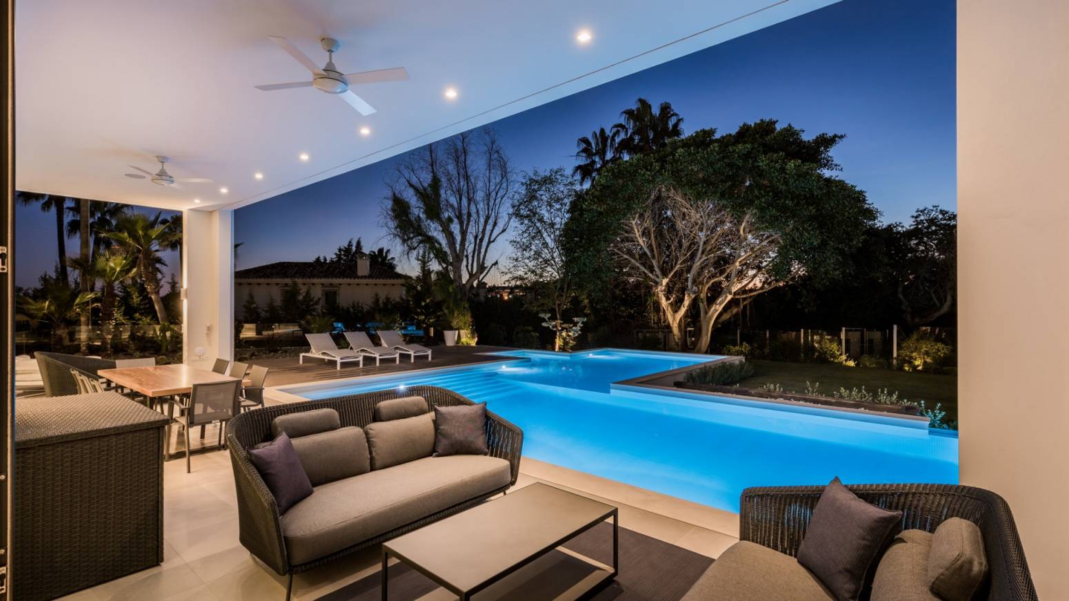 Offering the ultimate in relaxation and entertainment, this state of the art home is surrounded by striking water features which harmonise perfectly with the third green of Los Naranjos golf course to which it overlooks.